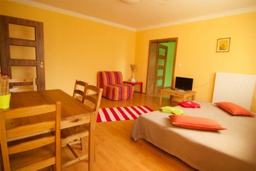 Hosté se mohou ubytovat v jednom z osmi plně vybavených apartmánů pro dvě, tři nebo čtyři osoby.