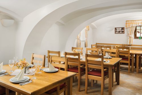 Večeře podáváme v příjemném prostoru naší restaurace. Hosté si mohou vybrat z nabídky různých jídel, přičemž menu pravidelně obměňujeme podle sezóny a dostupných surovin.