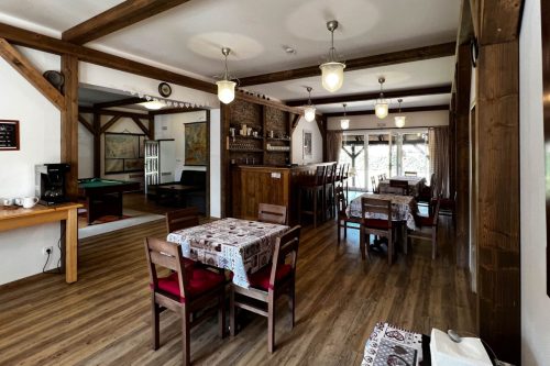 Zrekonstruovaný objekt nabízí sedm samostatných apartmánů umístěných v patře – tři dvoulůžkové a čtyři čtyřlůžkové. Každý apartmán má vlastní vybavenou kuchyň, lednici a sociální zařízení. V přízemí se nachází společenská místnost s barem a posezením, která je k dispozici všem ubytovaným hostům. K dispozici je také ping-pongový stůl, kulečník a úschovna kol.